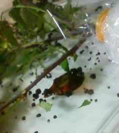 その後、飼育ケースの掃除をして間もなく3号のイモが怪しい体勢。
