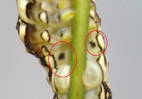 再掲:左 20日脱皮時 右 胸に左右対称のなぞの黒点