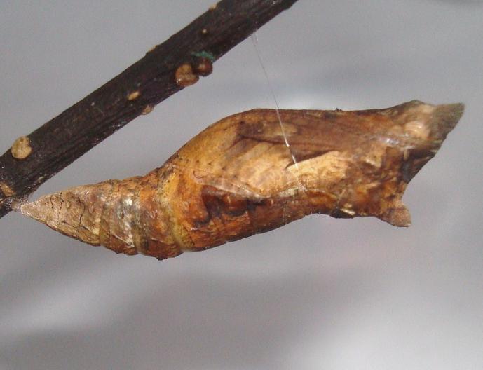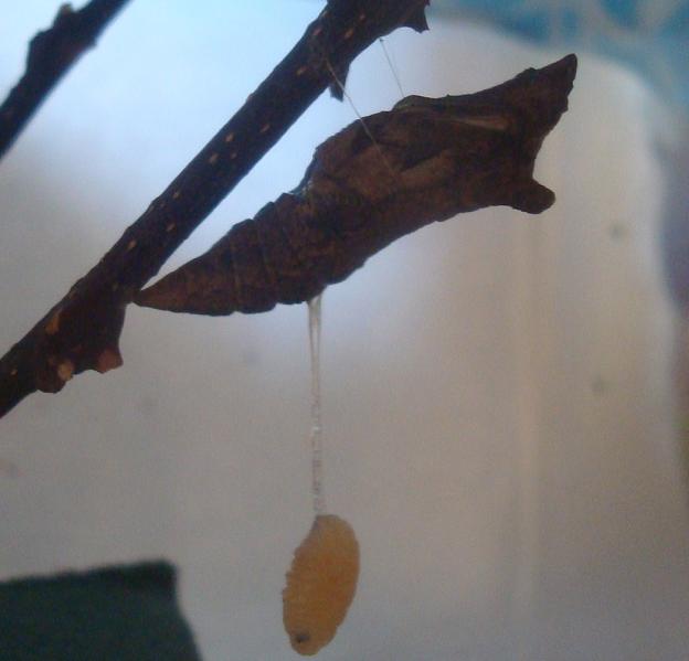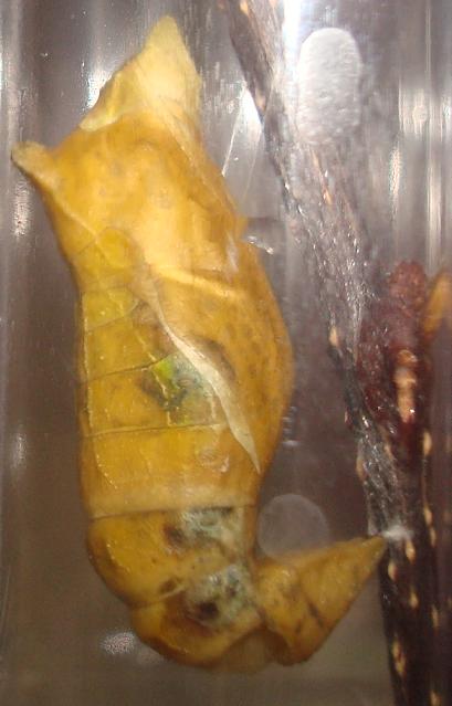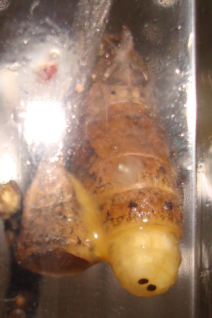 今朝、寄生疑いのあった色素変異個体の褐色蛹。(今朝の時点で茶色)