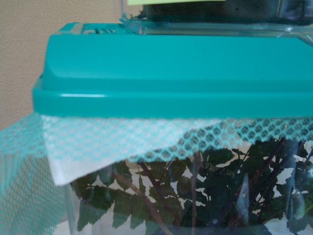 幼虫室はガーゼ+網を噛ませて蓋を閉めている