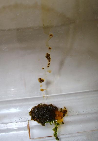 19時ごろ、飼育ケースによじ登っていた最初の色素変異固体が下痢(;・∀・)