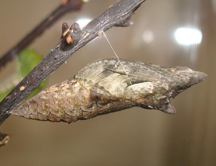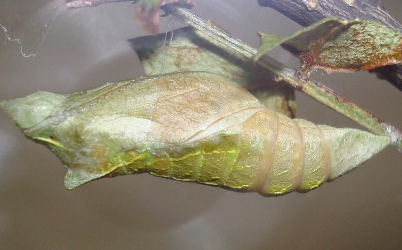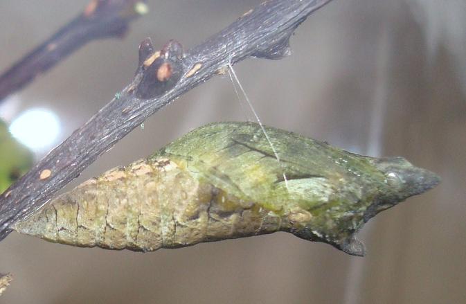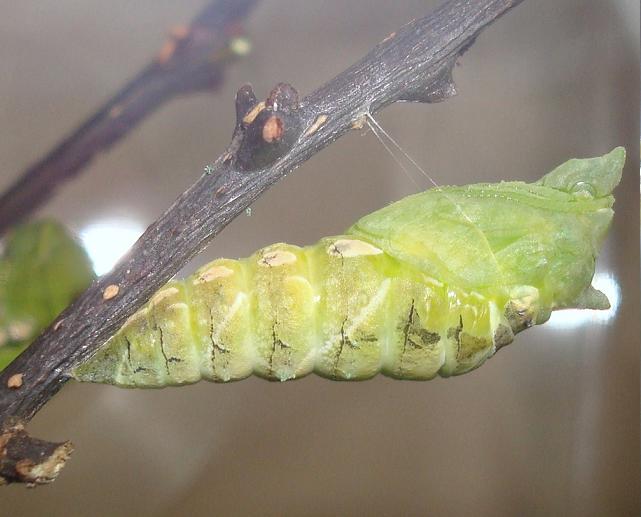 今までの蛹は全身綺麗な黄緑だったので焦る。